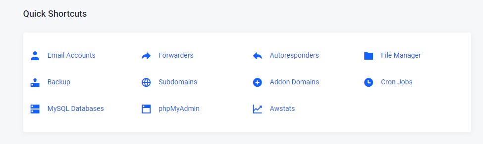 4. On the next page, scroll down to the Quick Shortcuts section. This area contains the most used cPanel Shortcuts. Find the Email Accounts icon and click on it:
